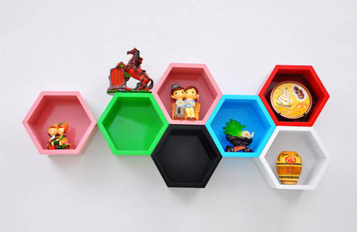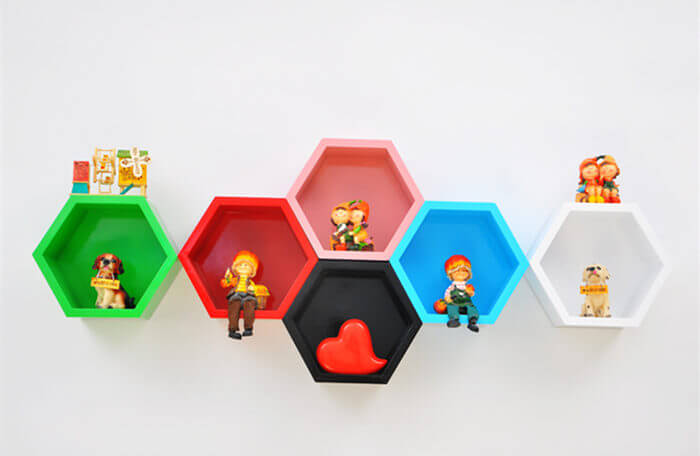 •Model No:Hexagon shape colorful floating honeycomb cube shelves CS004